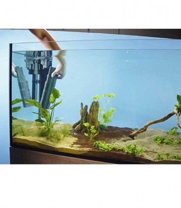 The EasyClean mechanism allows the entire filter foam module to be removed for cleaning without the need for tools - simply pull the front section away from it's magnetic catches and pull the front section out of the water for cleaning, leaving the sucker-mounted back section in place. The design also prevents debris entering the water when removed. The blue buttons on the removable front section allow each block to be dismantled for simple cleaning of each filter foam.