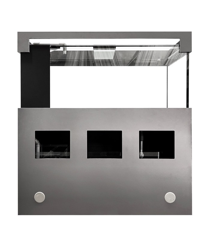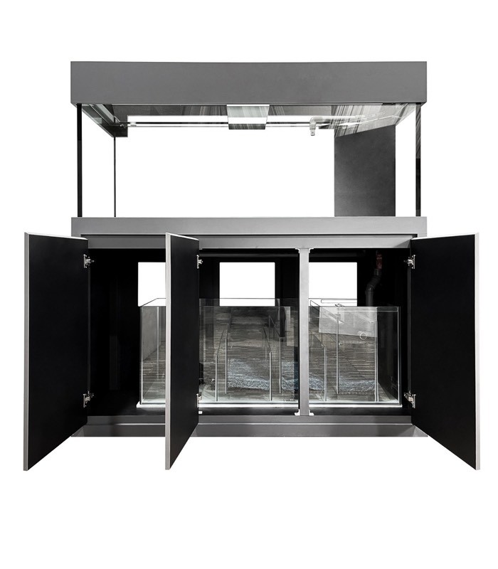 This is a Euro bracing aquarium tank set with cabinet and sump filtration thoughtfully designed by professional aquarists. It is built with high-quality parts and finished in fine workmanship.