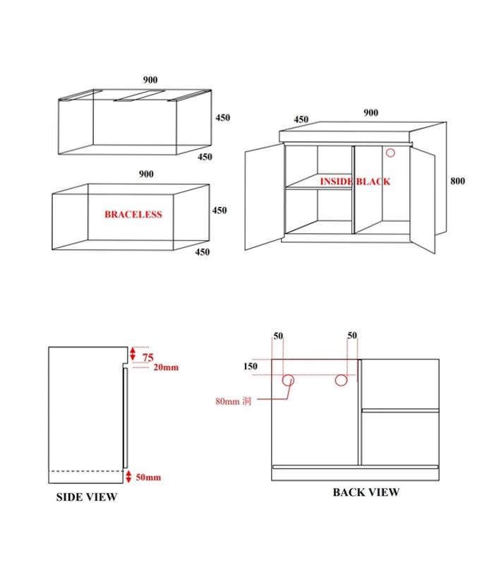 Cabinet Size : 900mm x 450mm x 800mm