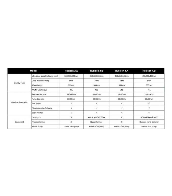 The design of the Rubicon allows for the user to easily upgrade/change equipment on the aquarium. Larger space in the filtration compartment, and rimless sides mean no difficult and awkward hardware positioning.