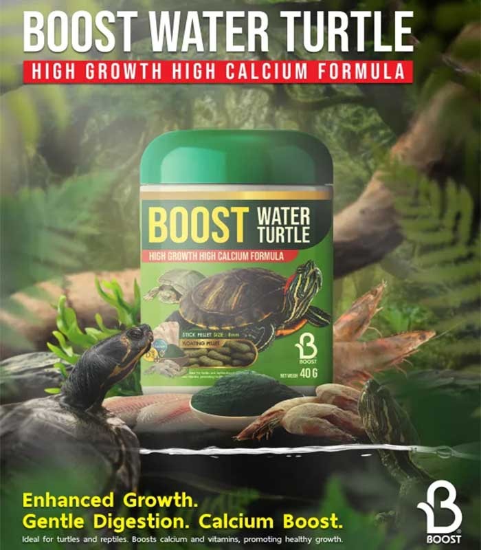 Boost Water Turtle formula promotes healthy growth and development, offering an easily digestible blend that supports strong and robust turtles. High in calcium for a durable, less brittle shell, it also contains natural shrimp protein, ensuring your turtle receives the essential nutrients for vitality.
